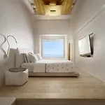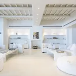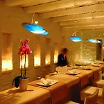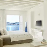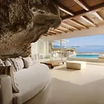 Con vistas sobre el mar Egeo, el hotel Cavo Tagoo Mykonos ofrece todos los días un desayuno buffet. Los huéspedes pueden visitar el restaurante Meraki y el bar lounge de este lugar con un estilo tradicional. Los huéspedes pueden disfrutar de una copa en el bar privado del hotel, decorado con un acuario.